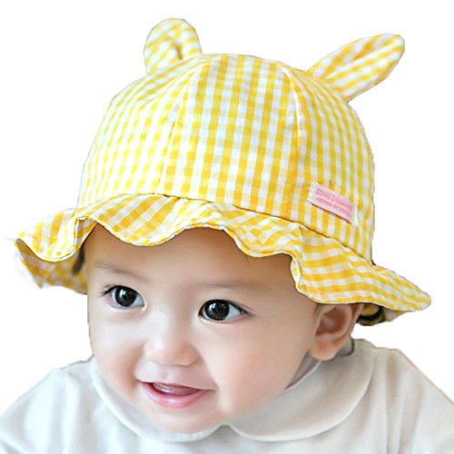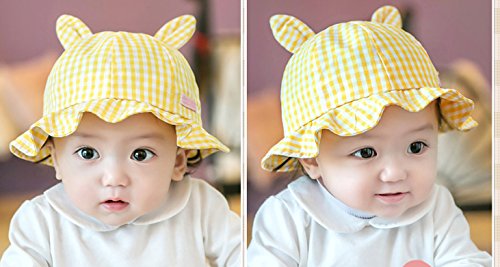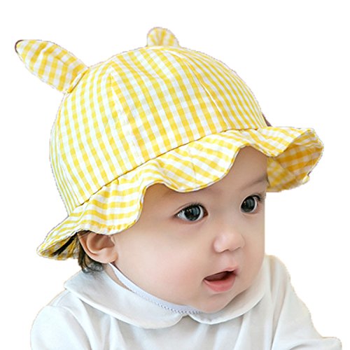 Ruideng 赤ん坊の帽子子供の帽子の布キャップ夏帽子格子縞のウサギの耳ビーチハット (Yellow)