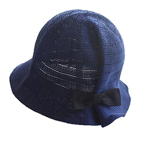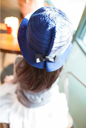 Ruideng 女の子は帽子弓王女の日帽子ビーチ帽子わら (Navy Blue)
