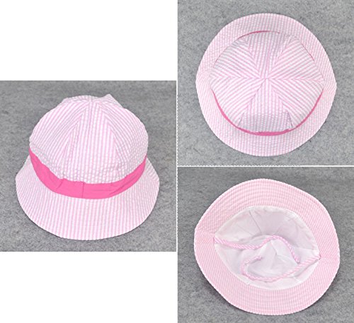 Ruideng 春のピンストライプの赤ちゃんのバケツの帽子赤ちゃん帽子太陽の帽子 (ピンク)