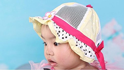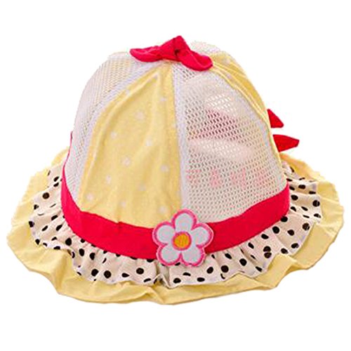 Ruideng 水玉 可愛い 帽子 つば 付き フリル リボン ドット 花 フラワー フード ベビー キッズ 日焼け 帽子 UV 日よけ帽 (イエロー)