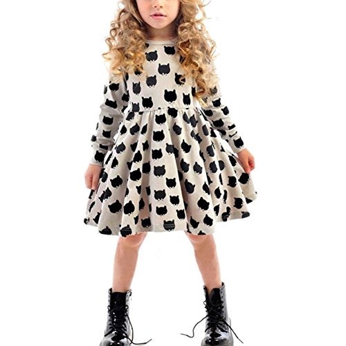 Ruideng かわいい女の赤ちゃんの綿の黒猫の柄プリントドレスストレッチスカートドレスボト (130cm)