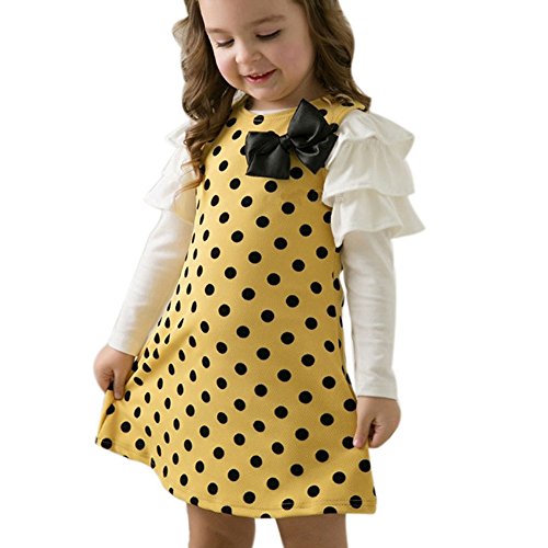 Ruideng かわいい赤ちゃん女の子長袖の服水玉ボウプリンセススカートドレス (110cm, イエロー)