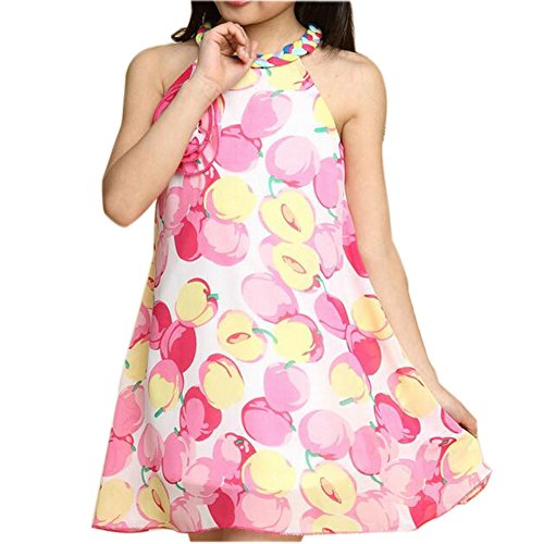 Ruideng ガールズアップルパターンホルターシフォンプリンセスドレス甘い服スカートドレス (120cm, ピンク)