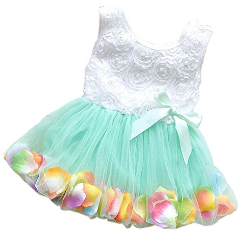 Ruideng 子供の女の子の夏のレースの花びらカラフルな裾のドレスのスカート (12, グリーン)
