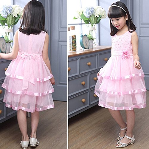 Ruideng ガールズサマープリンセスドレススカートノースリーブのドレス ワンピースのスカートのドレスチュチュの公演発表会 結婚式 入園式 演奏会 ケーキベール (110cm, ピンク)
