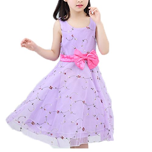 Ruideng ガールズサマープリンセスドレススカートノースリーブのドレス ワンピースのスカートのドレスチュチュの公演発表会 結婚式 入園式 演奏会 (160cm, パープル)