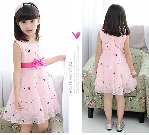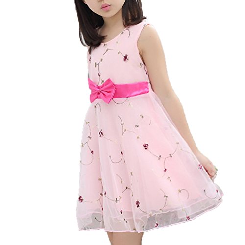 Ruideng ガールズサマープリンセスドレススカートノースリーブのドレス ワンピースのスカートのドレスチュチュの公演発表会 結婚式 入園式 演奏会 (110cm, ピンク)