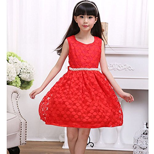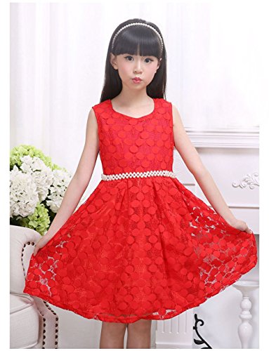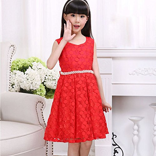 Ruideng 女の子のファッションドレスのレースのベストドレスプリンセスドレス子供服スカートワンピース (110cm, レッド)