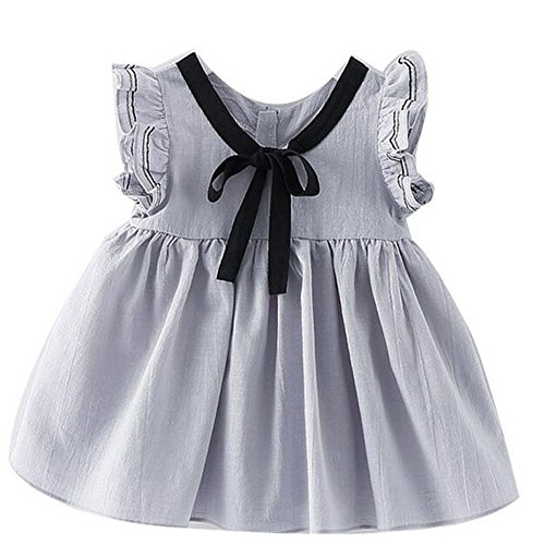 Ruideng 赤ちゃんの女の子のドレスコットンフライスリーブドレスプリンセスドレス小さな子供服スカート (80cm, グレー)