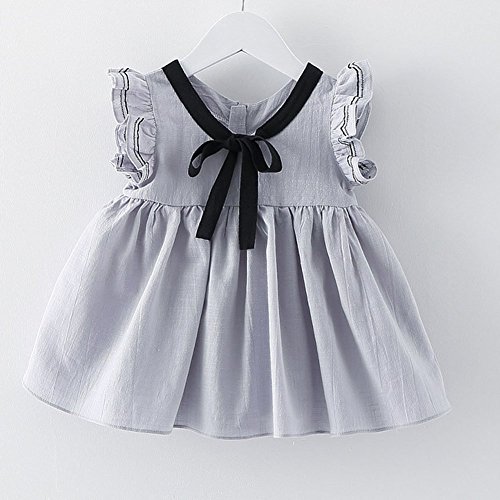 Ruideng 赤ちゃんの女の子のドレスコットンフライスリーブドレスプリンセスドレス小さな子供服スカート (73cm, グレー)