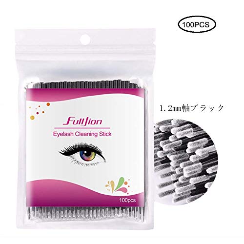 Ruier-tong 綿棒 極細 100本 使い捨てマイクロスティック まつげ アプリケーター まつげエクステ ベビー綿棒 マイクロブラシ まつげ 育毛剤 長い綿棒 ジェルネイル 化粧用綿棒 耳 歯科用 綿棒 精密機械の細部の掃除用にも (1.2mm軸ブラック)