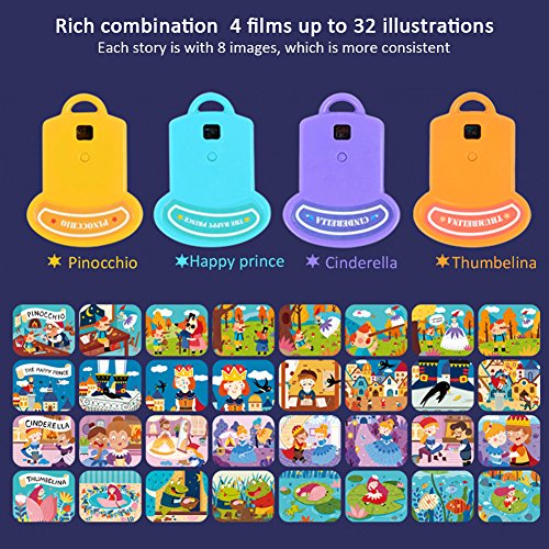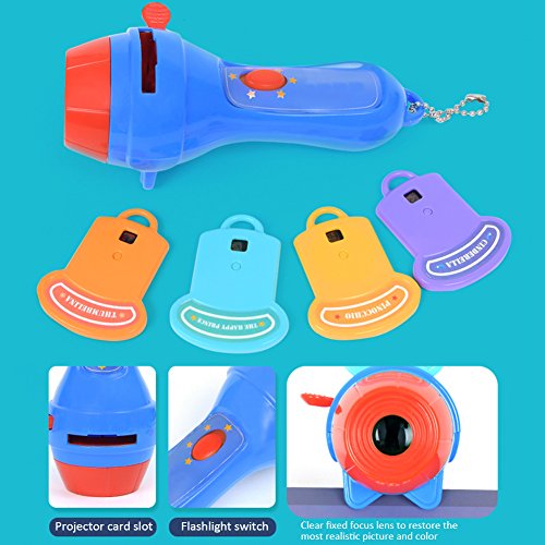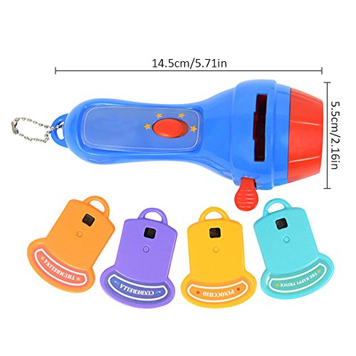 Ruier-tong 子供知育玩具 おとぎ話 ミニプロジェクター 寝かしつけ用おもちゃ 懐中電灯様式 LED搭載 天井いっぱい おやすみホームシアター 3歳以上 子供おもちゃ 贈り物にもお勧め (4枚フィルム ブルー)