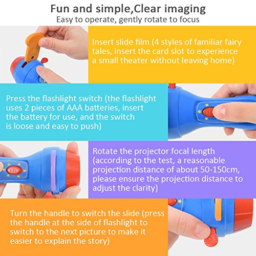 - 子供知育玩具:可愛い懐中電灯様式のデザインで、子供の好奇心を引き起こしやすいです。夜に懐中電灯を開けて、天井に映る可愛い画像を見ると子供の脳全体を刺激し、脳の望ましい成長を促すことができます。(ご注意:単4形電池は別売り)