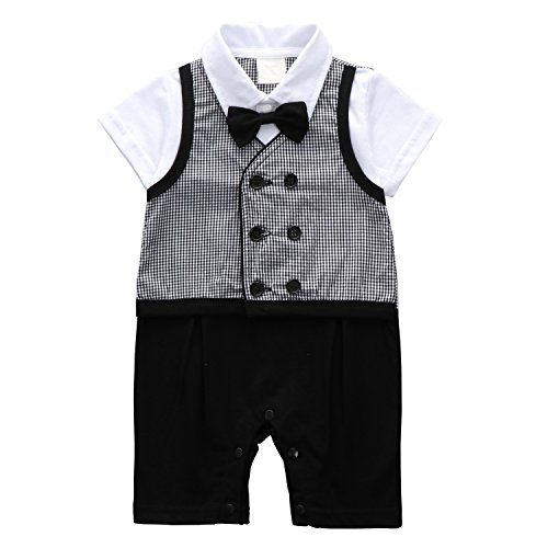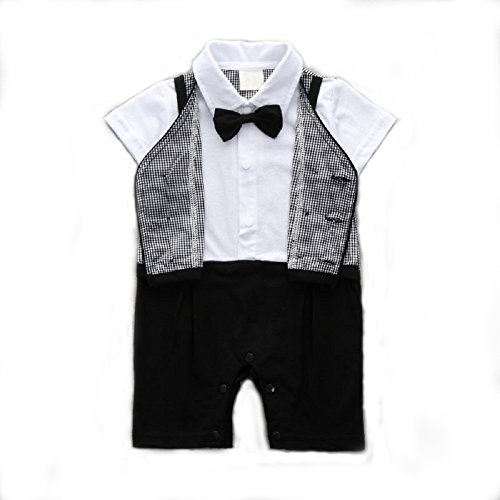 赤ちゃん フォーマル カバーオール 半袖 男の子 ロンパース 蝶ネクタイ (80)