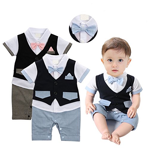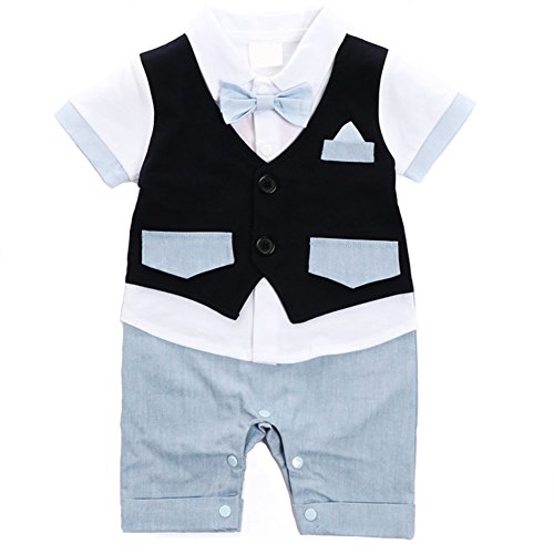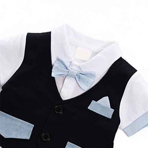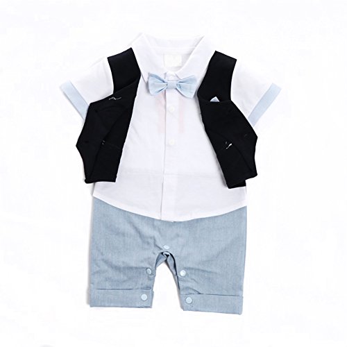 ベビー 子供服 カバーオール フォーマル スーツ風 ロンパー ボウタイ (70)