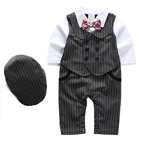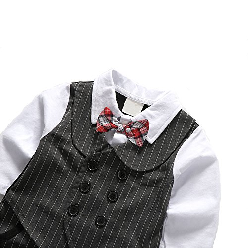 - 2. 重ね着風、蝶ネクタイつき、かっこいい男の子フォーマルロンパースです(ベストは前だけで、後はありません)。