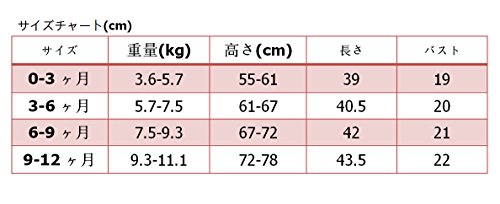 サイズ0-3月: 重量(kg) 3.6-5.7 高さ(cm) 55-61 長さ39 バスト19