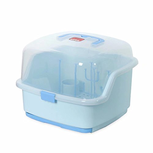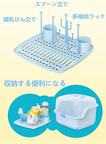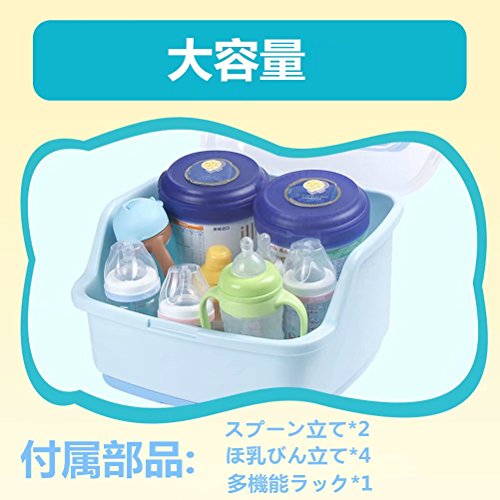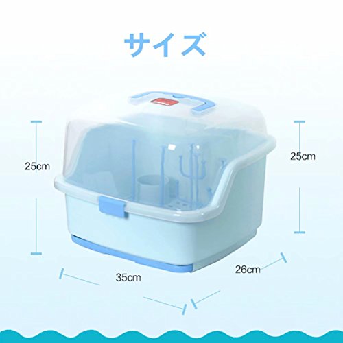哺乳びん洗浄器具 哺乳瓶ラック 哺乳びん乾燥 カバー付き 抗菌 ほこり防止 衛生的 水切り スタンド 消毒 清潔 大容量 収納 乾燥ラック ベビー用品 ボックス 持ち運びに便利 取り外し可能 ブルー