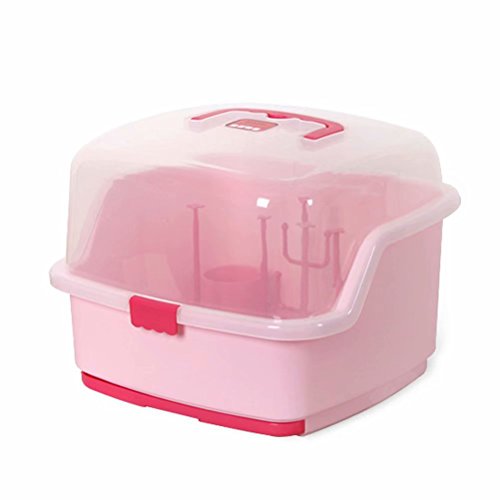 哺乳びん洗浄器具 哺乳瓶ラック 哺乳びん乾燥 カバー付き 抗菌 ほこり防止 衛生的 水切り スタンド 消毒 清潔 大容量 収納 乾燥ラック ベビー用品 ボックス 持ち運びに便利 取り外し可能 ピンク