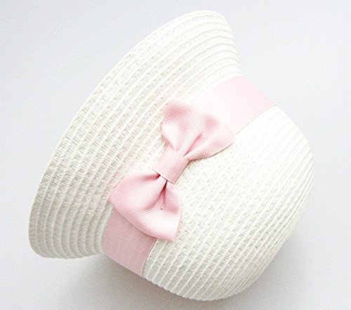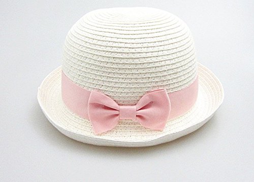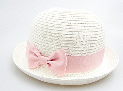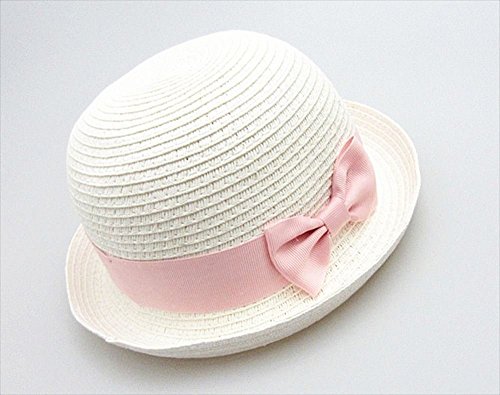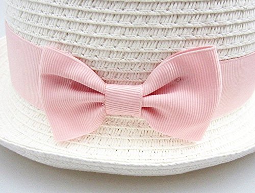 Rush.C ファッション 小物 帽子 ツバ付き 麦わら帽子 リボン キッズ ピンク ブルー 【Rush.Cオリジナルハンカチセット】 B89 (ピンク)