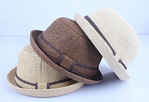 Rush.C ファッション 小物 帽子 ツバ付き 麦わら帽子 男の子 キッズ ホワイト ブラウン 【Rush.Cオリジナルハンカチセット】 B92 (ブラウン)