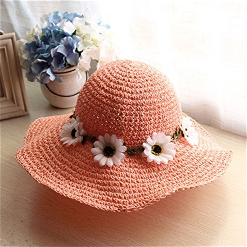 Rush.C ファッション 小物 帽子 麦わら帽子 キッズ お花 ブラウン ピンク ライトブルー 【Rush.Cオリジナルハンカチセット】 B95 (ピンク)