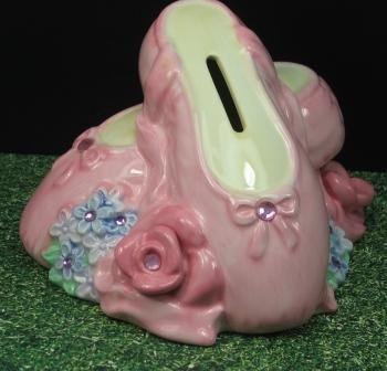 ピンクバレエ靴銀行のセラミック製ゴム停止取得する下部にコイン。
