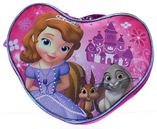 This Sofia the First backpack can easily carry books, gym clothes, pencils and more! It features a roomy main compartment, the sides feature mesh pockets that are great for storing a calculator, note cards or even a water bottle. The lunch bag is big enough to store lunch and snack for the day and conveniently attaches to the backpack thanks to its velcro straps. This set can be hung up when not in use by the webbed locker loop. This set is designed in Pink durable fabric with accents of Purple with fun images of the cute Princess Sofia the First! The perfect back to school choice for any Sofia the First fan!