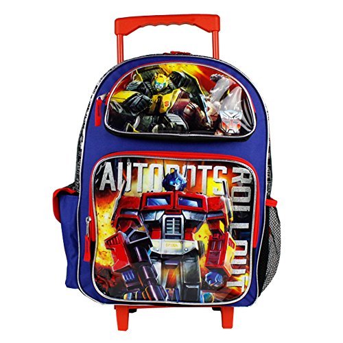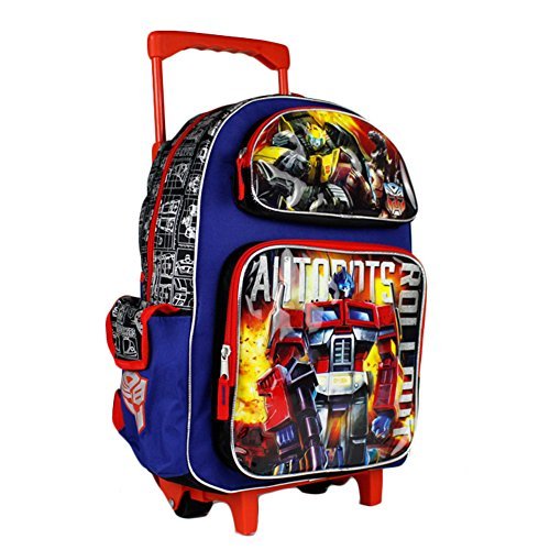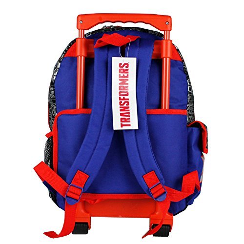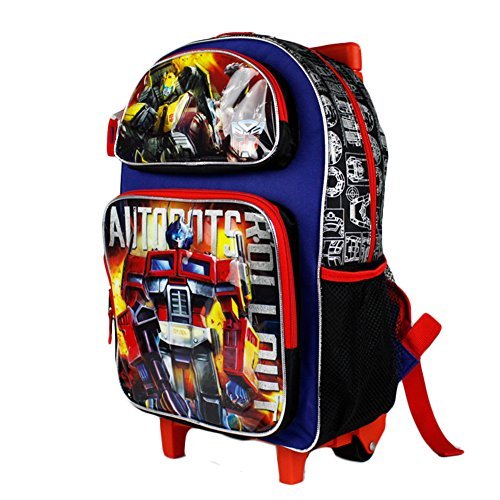 Transform your school experience into something awesome! ; Transformers rolling backpack; Full size children's backpack; Also can be used as a carry backpack; Includes a mesh and velcro cover side pouch; Measures 16in (40.5cm) tall, 12in (30.5cm) wide and 5in (12.5cm) deep