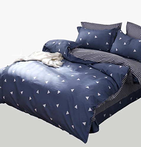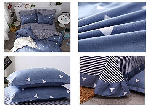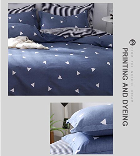 ブルー羽毛カバーセットダブル100%コットンアイアントライアングルパターンデザインアンチ静的快適な寝具簡単なケア