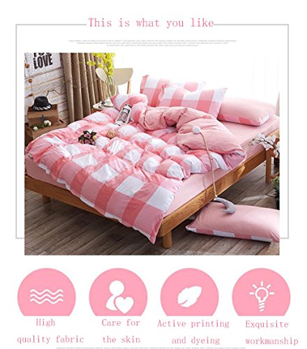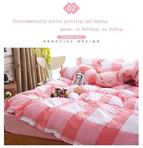 ピンクグリッドの羽毛布団カバーセット通気性のある100%コットンのフラワーパターンなしアイロン静電気防止寝具簡単なケア(シングルダブル),200*230Cm