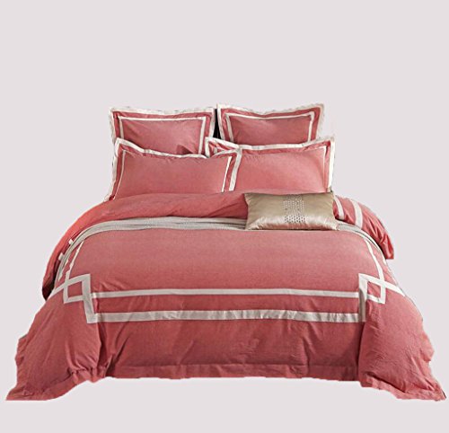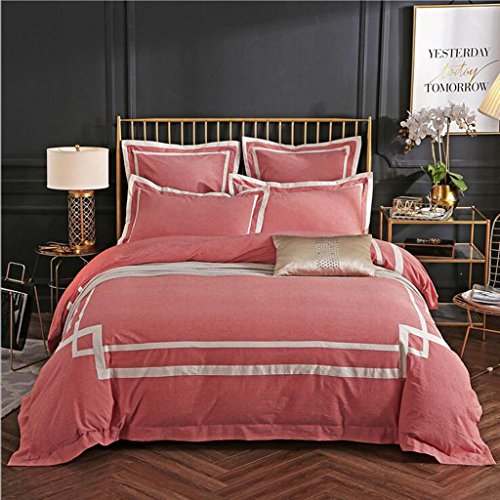 オレンジ羽毛布団カバーセット100%コットン通気性無アイアン静電気防止寝具簡単なケア(ダブル、キング),200*230Cm
