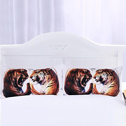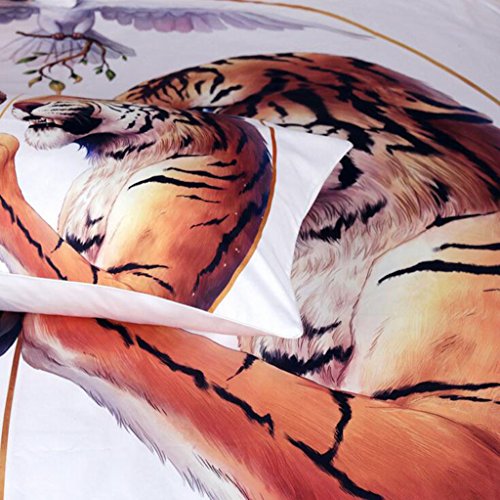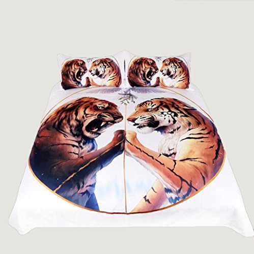 3D効果完全な寝具セットアニマルパターン羽毛カバー白と枕ピローキルトと茶色通気性(シングルダブルクイーンキング)3つの作品,180*210Cm