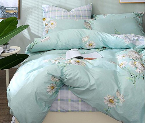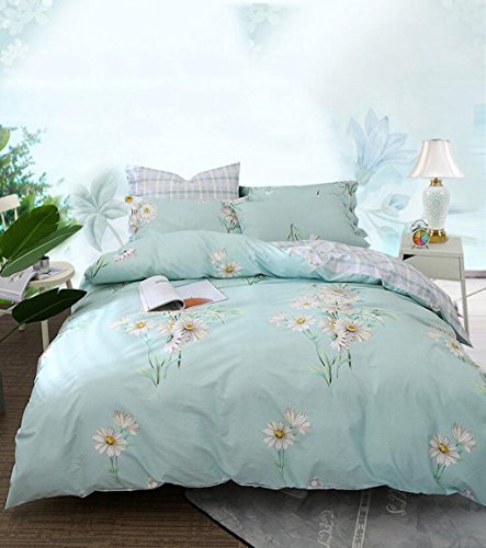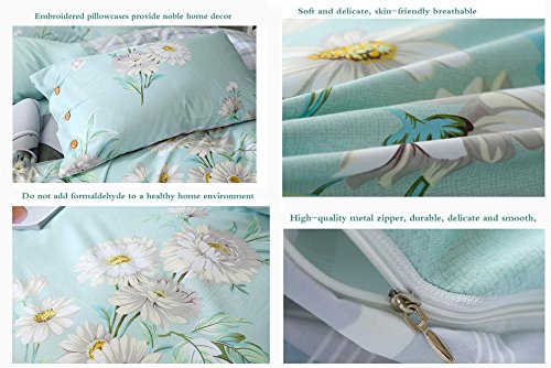 ライトブルーの羽毛布団のカバー完全な簡単なケアの寝具セット枕と刺繍デザインの非鉄キルトカバー(シングルダブルクイーン),160*210Cm