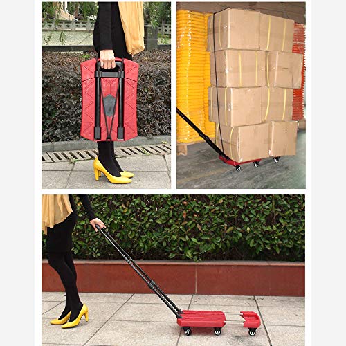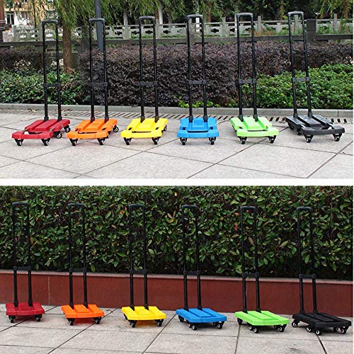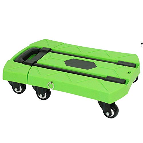 Rxbdk ショッピングトロリーテレスコピックフォールド6ラウンド多機能車のトレーラー荷物プルロッドフラットビッグホイールグリーン