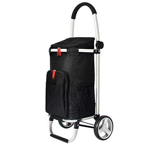 Rxbdk ショッピングトロリー絶縁折りたたみポータブルプルロッド食料品買い物黒