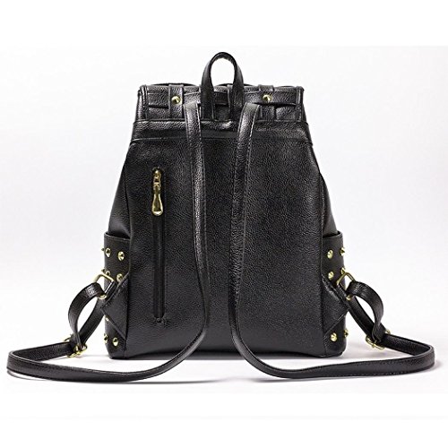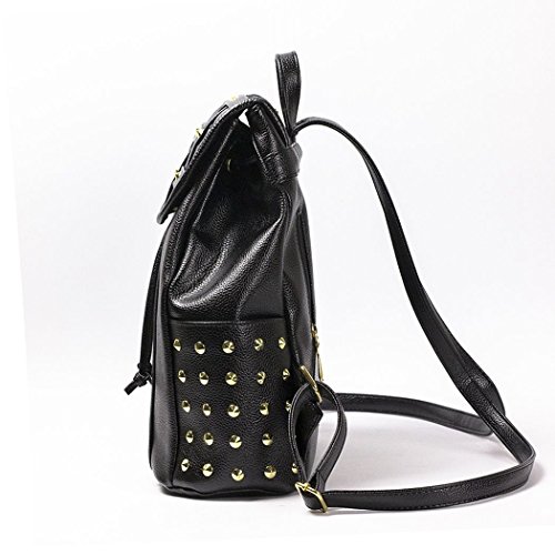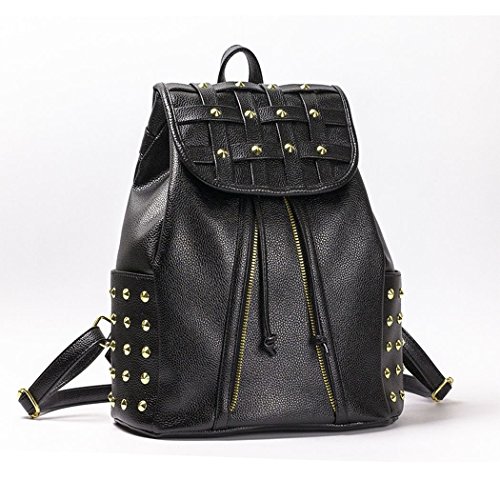 Ryseレディースファッショナブルなリベットクラシックメタルバックパック学生レジャーバッグ カラー: ブラック