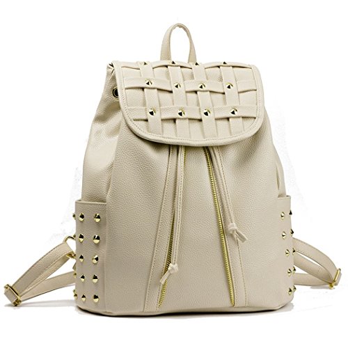 Ryseレディースファッショナブルなリベットクラシックメタルバックパック学生レジャーバッグ ホワイト