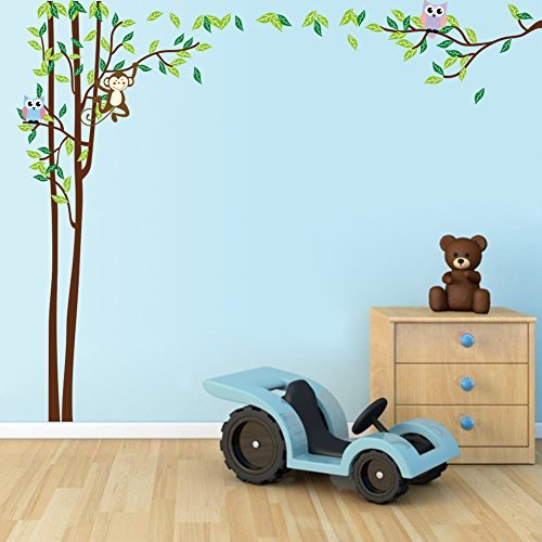 Ryuan Owl and Monkey on Tree Branch Wall Decal Sticker Large size Home Decor Nursery Wall Decorative(86.6*69) by Ryuan