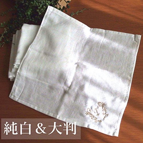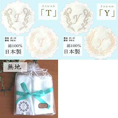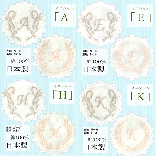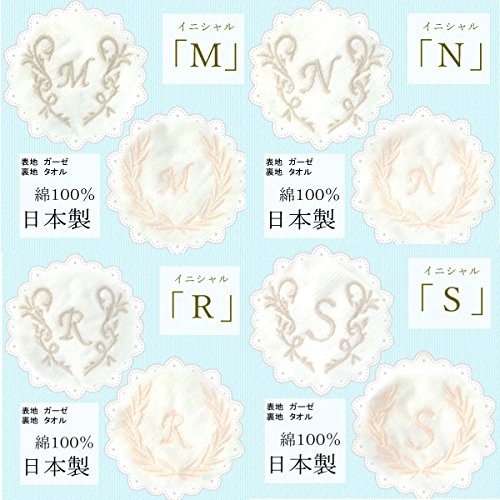 - 日本製 イニシャルガーゼハンドタオル 大判ハンカチ 綿100% ふんわり120匁 ご出産プチギフトにも