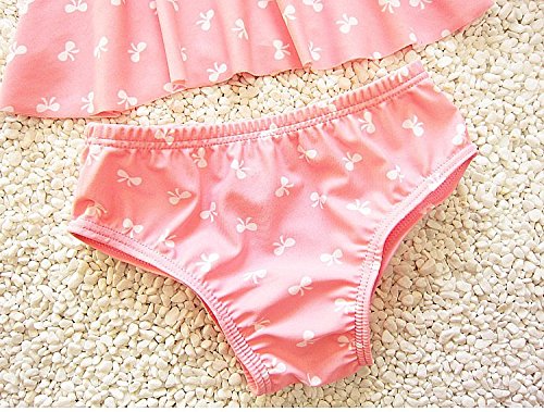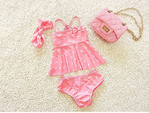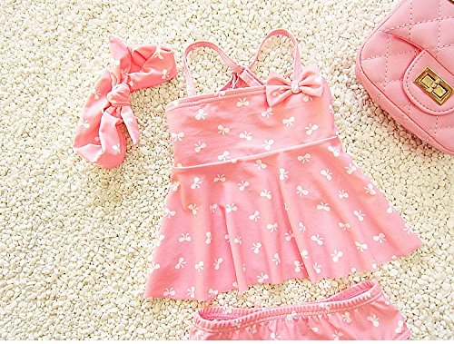 S&C Live 水着 子供 女の子 キャップ付水着3点セット プリンセス風 かわいいリボン付 ヘアバンド付 幼稚園用 子供お誕生日プレゼント かわいいリボン柄#160077 (S)