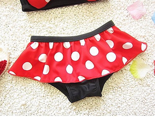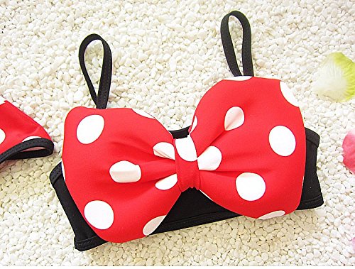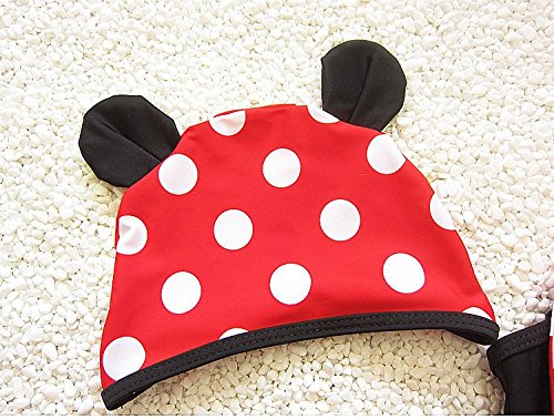 S&C Live 水着 子供 女の子 キャップ付水着3点セット ミッキマウス柄 かわいいリボン付 幼稚園用 子供お誕生日プレゼント#160078 (M)