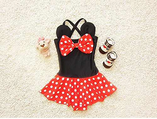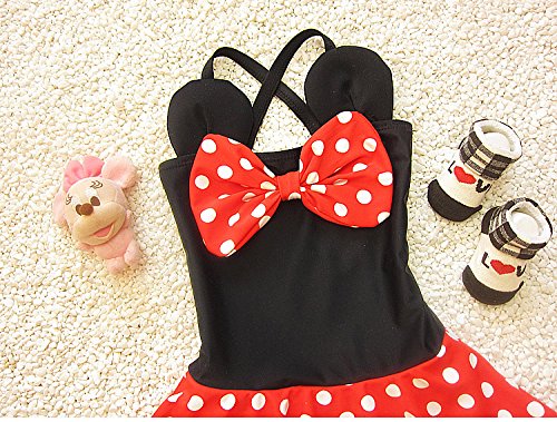 S&C Live 水着 子供 女の子 ミッキマウス柄 かわいいリボン付 幼稚園用 子供お誕生日プレゼント 出産お祝いプレゼント#16115 (L)