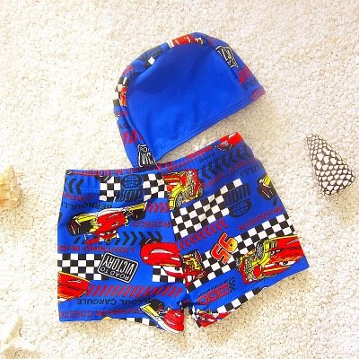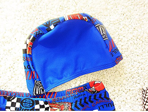 S&C Live 水着 キッズ子供 男の子 キャップ付水着2点セット ROBOCAR柄/海世界柄 車柄 ベビー水着 赤ちゃん水着 出産お祝いプレゼント 子供お誕生日プレゼント 七三五祝いプレゼント スイムスーツ ジュニア水着 旅行 ビーチ 海 川遊び スイミング 水泳トレーニング水着 幼稚園用#17183 (M, 車柄(ブルー))