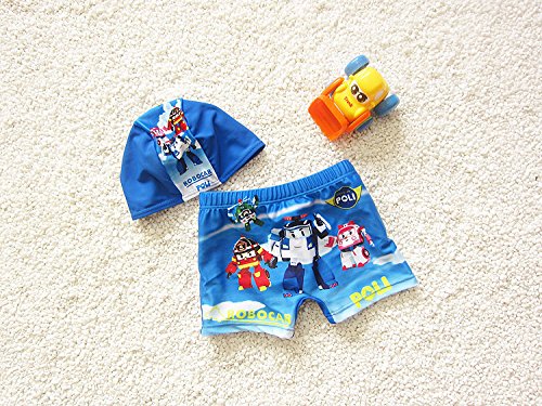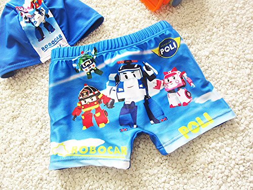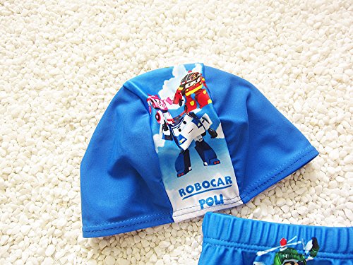 S&C Live 水着 キッズ子供 男の子 キャップ付水着2点セット ROBOCAR柄/海世界柄 車柄 ベビー水着 赤ちゃん水着 出産お祝いプレゼント 子供お誕生日プレゼント 七三五祝いプレゼント スイムスーツ ジュニア水着 旅行 ビーチ 海 川遊び スイミング 水泳トレーニング水着 幼稚園用#17183 (XXL, ROBOCAR柄)