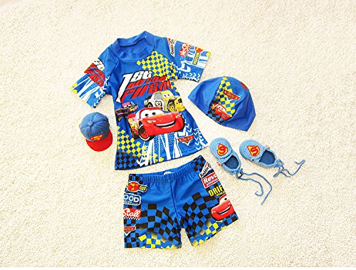 S&C Live 水着 キッズ子供 男の子 トップス+ボトム+キャップ3点セット水着 自動車レース選手柄  モータースポーツ柄 ベビー水着 赤ちゃん水着 出産お祝いプレゼント 子供お誕生日プレゼント 七三五祝いプレゼント スイムスーツ ジュニア水着 旅行 ビーチ 海 川遊び スイミング 水泳トレーニング水着 幼稚園用 新生児水着#17209 (L)