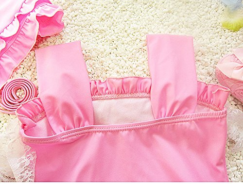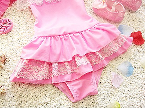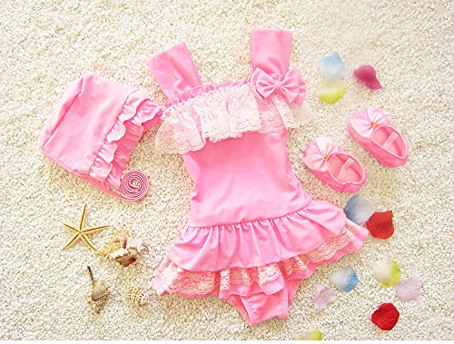 S&C Live 水着 キッズ子供 女の子  ガールズ ビキニワンピース+キャップ2点セット水着 ピンク 可愛いレースとリボン付 ベビー水着 赤ちゃん水着 出産お祝いプレゼント 子供お誕生日プレゼント 七三五祝いプレゼント スイムスーツ ジュニア水着 旅行 ビーチ 海 川遊び スイミング 水泳トレーニング水着 幼稚園用 新生児水着 女の子#17213 (L)