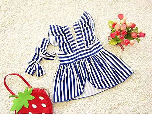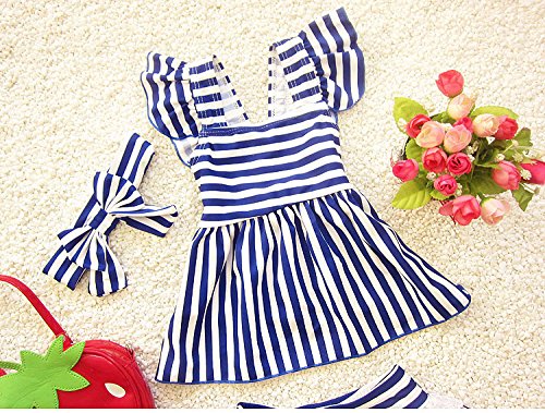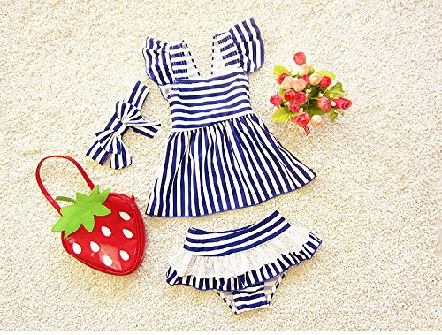 S&C Live 水着 キッズ子供 女の子  ガールズ ビキニワンピース+ビキニ+ヘアバンド3点セット水着 可愛いボーダー柄 ピンク/ネイビー スウィート風 ベビー水着 赤ちゃん水着 出産お祝いプレゼント 子供お誕生日プレゼント 七三五祝いプレゼント スイムスーツ ジュニア水着 旅行 ビーチ 海 川遊び スイミング 水泳トレーニング水着 幼稚園用 新生児水着 女の子 春夏新作#17291 (XXL, ネイビー)