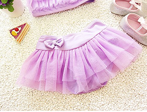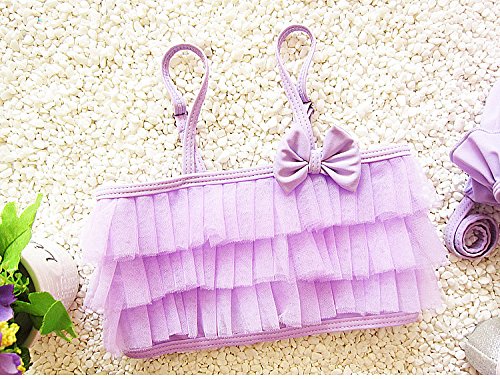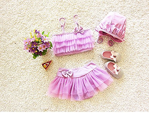 S&C Live 水着 ビキニー キッズ子供 女の子 ガールズ ビキニトップス+ビキニ+キャップ3点セット水着 可愛いリボン付 ピンク/パープル/グリーン スウィート風 ベビー水着 赤ちゃん水着 出産お祝いプレゼント 子供お誕生日プレゼント 七三五祝いプレゼント スイムスーツ ジュニア水着 旅行 ビーチ 海 川遊び スイミング 水泳トレーニング水着 幼稚園用 新生児水着 女の子 競泳水着 春夏新作#17293 (L, パープル)