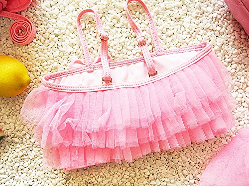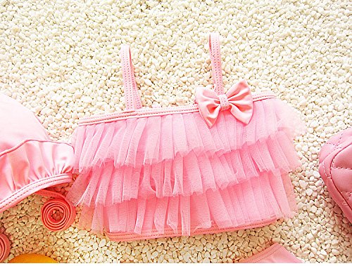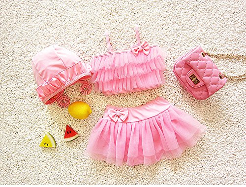 S&C Live 水着 ビキニー キッズ子供 女の子 ガールズ ビキニトップス+ビキニ+キャップ3点セット水着 可愛いリボン付 ピンク/パープル/グリーン スウィート風 ベビー水着 赤ちゃん水着 出産お祝いプレゼント 子供お誕生日プレゼント 七三五祝いプレゼント スイムスーツ ジュニア水着 旅行 ビーチ 海 川遊び スイミング 水泳トレーニング水着 幼稚園用 新生児水着 女の子 競泳水着 春夏新作#17293 (L, ピンク)
